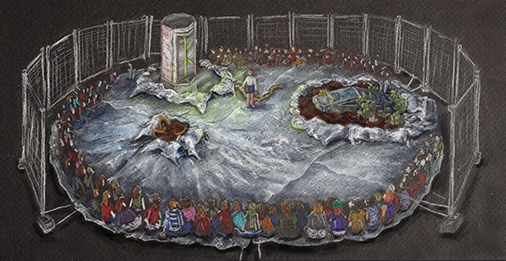 Mais l’intrusion d’une créature dans l’enclos du chantier bloque tout. C’est un enfant sauvage. Qui est-il ? Est-il contagieux ? Comment a-t-il survécu ? Est-il vraiment sauvage ? Quelles sont ses intentions ? Agit-il seul ? A-t-il un message ? Peut-il nous être utile ? Toute une galerie de personnages assiège et ausculte l’enfant, projetant sur lui ses propres représentations du devenir humain.